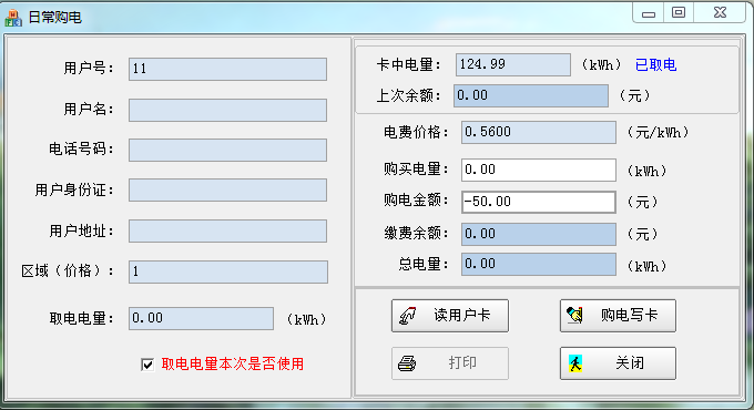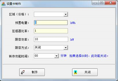 注意:區域(價格):目的是相同的區域價格電能表與用戶電能卡才可以相互使用。