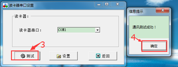如果測試提示“通訊測試成功”就代表讀卡器連接正常。