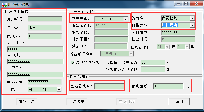 重新插張新卡到讀卡器,以上信息都根據自己要求設置好之后,單擊“開戶購電”。出現以下畫面。