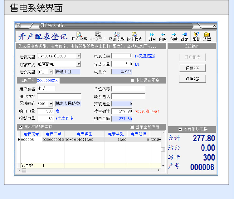(6)預(yù)付費電表的使用流程:1將IC卡插入讀卡器 2輸入要充值的金額 3電影充值發(fā)票 4收取費用 5拔出IC卡 6將IC卡插入電表使用,具體操作如下。