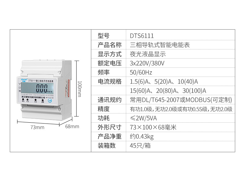 型號:DTS6111三相智能導軌式電表