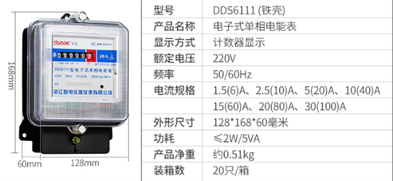 型號:DDS6111單相電表(鐵殼)