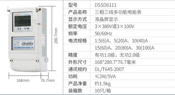 三相智能電能表是由測量單元和數據處理單元等組成,除計量有功(無功)電能量外,還具有分時、測量需量等兩種以上功能,并能顯示、儲存和輸出數據的電能表。