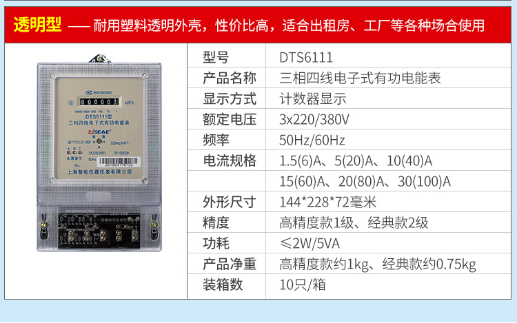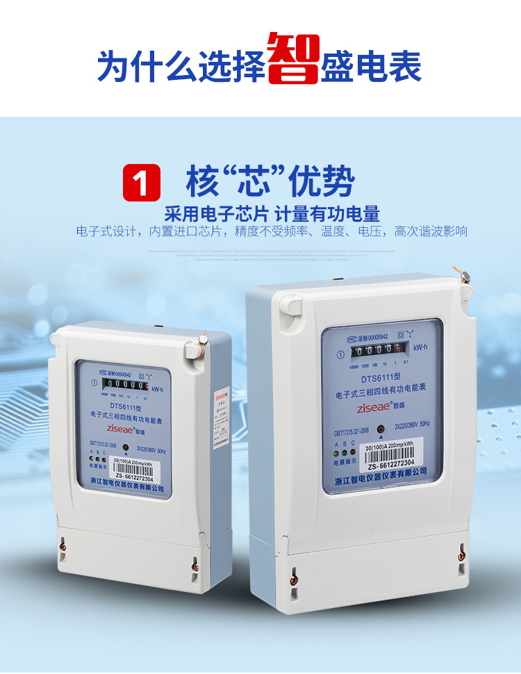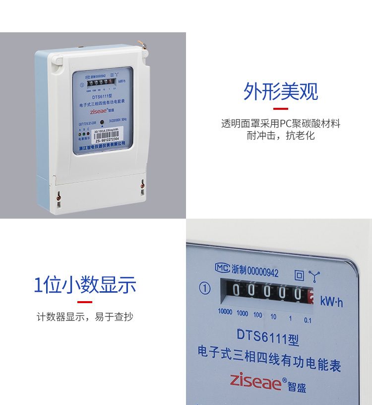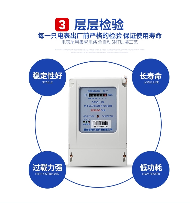 DTS6111型三相四線和DSS6111型三相三線兩種型號三相電子式有功電能表,內部運用了集成電路在經過SMT工藝生產制作而成。結構設計合理,制作工藝先進。跟傳統的電能計量表對比,三相電子式有功電能表的測量準確度高、性能可靠、節能。