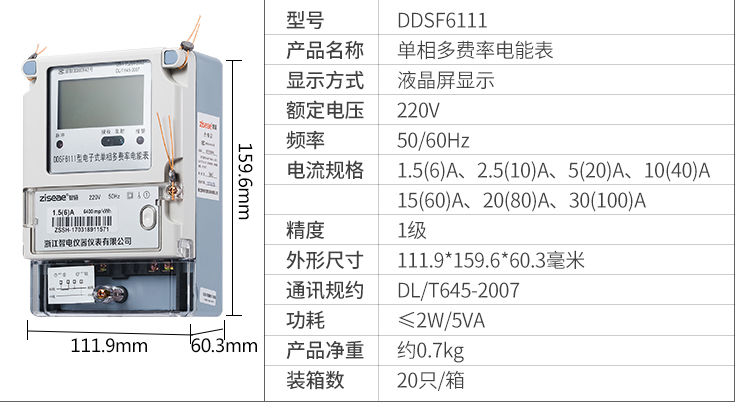 DDSF6111單相多費率電表(2007規約)