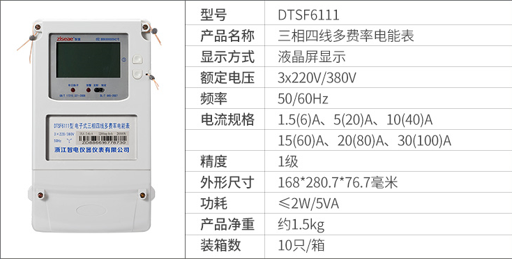 DTSF6111三相四線  DSSF6111 三相三線電子式多費率電能表(尖峰平谷電表),具有分時計量用戶所用電能功能,并可實現多種用電費率計費和集中抄表功能的電能計量電能表,該表技術性能符合GB/T17215.321-2008《1級和2級電子式交流有功電度表》和GB/T15284-2002《復費率(分時)電度表》國家標準的要求,適用于計量額定頻率為50Hz或60Hz三相交流有功電能。