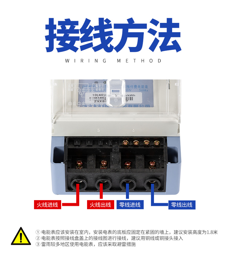 2、電表應安裝在干燥通風的地方,安裝電表的底板應固定在堅固耐火,不易振動的墻上,電表高度約1.8m左右。