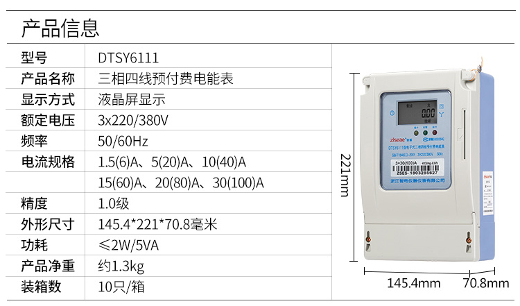 DTSY6111三相四線預(yù)付費電表(1代物業(yè)版)