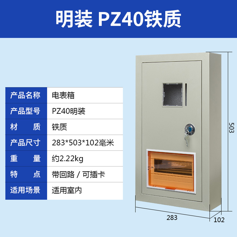 我公司生產(chǎn)的PZ40電表箱采用0.5-1mm厚冷軋鋼板和進(jìn)口PC高透視窗,并帶有門鎖,安全防盜,大氣美觀。可安裝各類電能表和C45、空氣開關(guān)、斷路器閘刀等,廣泛用于家庭、公寓、學(xué)校、工廠等場所。
